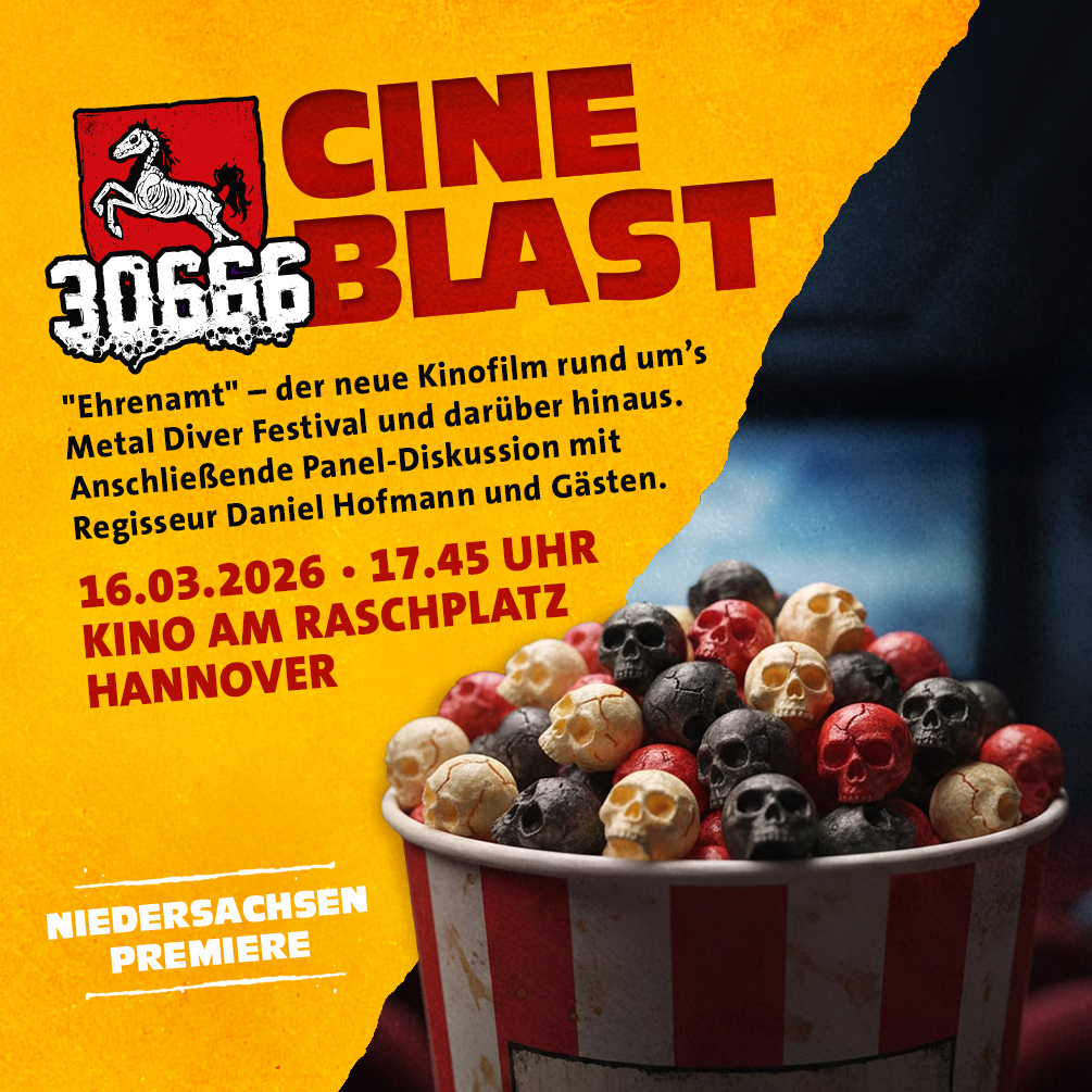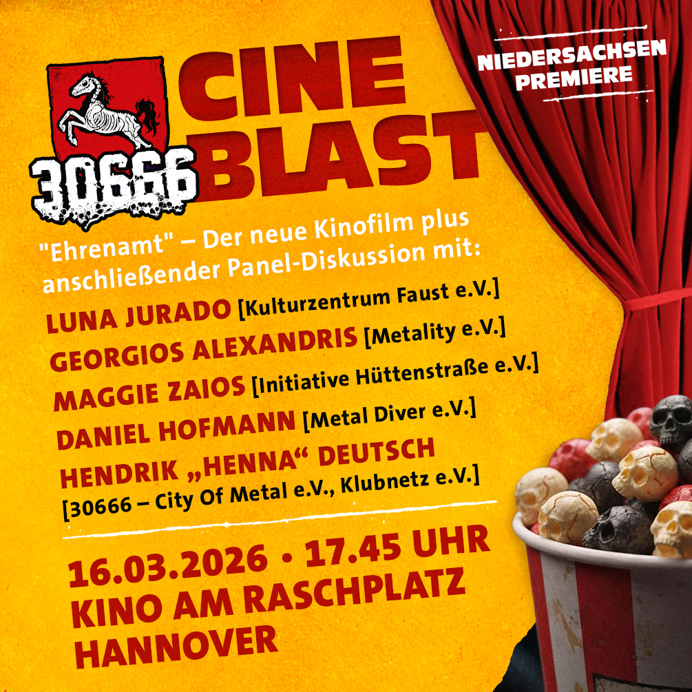 Der Lieblingsverein der Herzen 30666 City of Metal e.V. lädt Euch zu einem ganz besonderen Kino-Abend ein: Im Rahmen des CINE BLAST zeigen wir die Niedersachsen-Premiere des Films „EHRENAMT Eine Kulturreise im ländlichen Raum“ – und das in einem exklusiven Rahmen mit besonderen Gästen und ein bisschen kulturellen Programm!